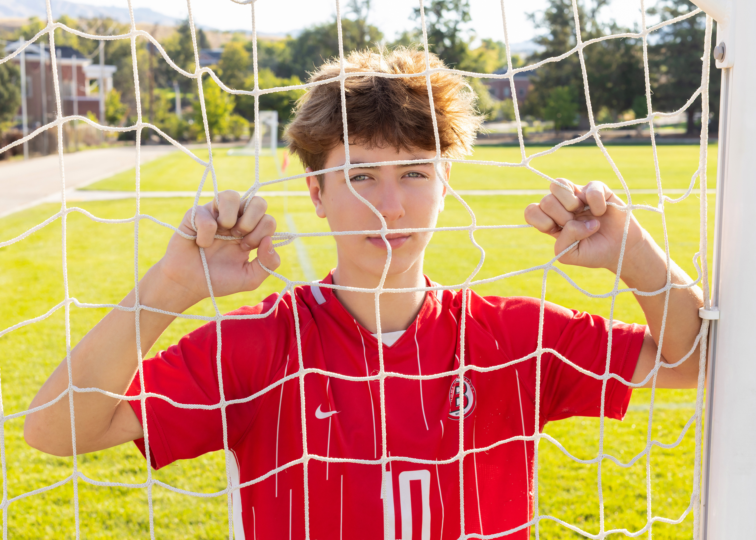 His mom had her heart set on soccer pictures at his high school field… only problem? It was completely fenced in and locked. 🚫😂 But no worries — I came prepared with two ladders and a little determination! 🪜😉