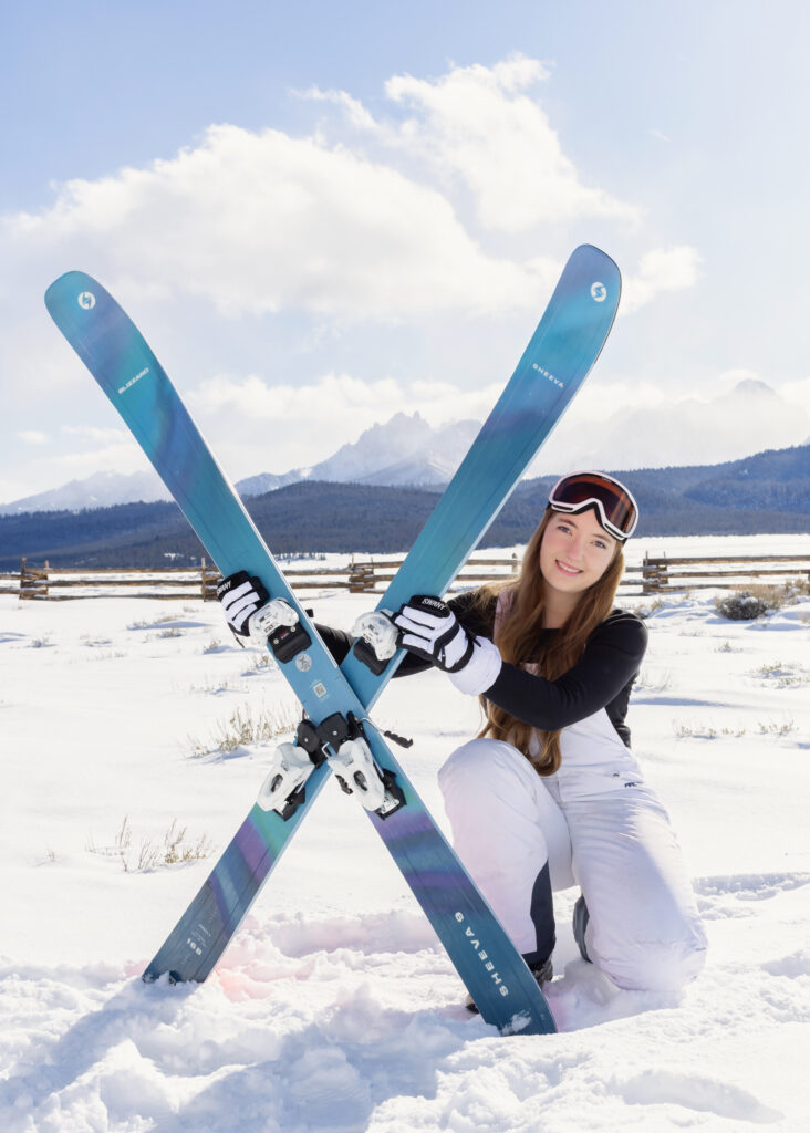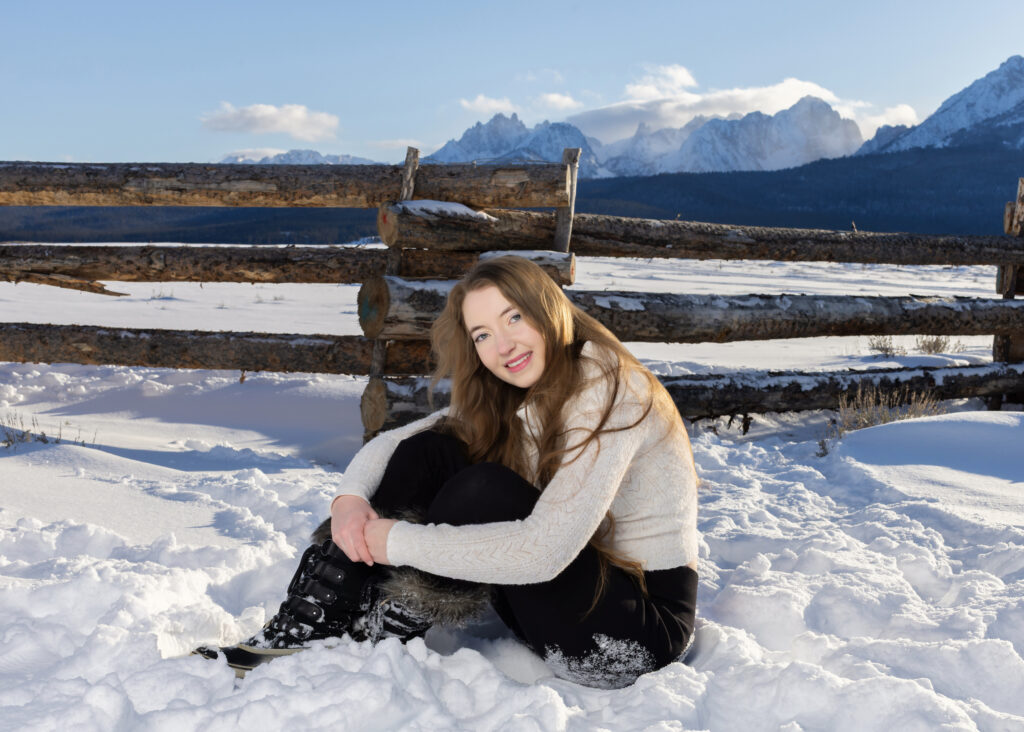 I’m not sure it gets more breathtaking than the Sawtooth Mountains! This very first photo feels like the perfect ending to senior year — facing those stunning peaks, back to me, standing on a snowmobile in fresh snow, arm in the air, hair blowing in the wind. Pure freedom. Pure magic. ✨